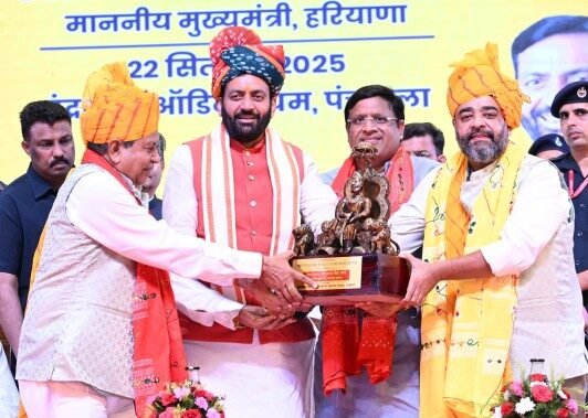 चंडीगढ़ , 22 सितंबर – हरियाणा के मुख्यमंत्री श्री नायब सिंह सैनी ने कहा कि केंद्र और प्रदेश सरकार महाराजा अग्रसेन के दिखाए मार्ग पर चल कर “सबका साथ, सबका विकास” की नीति पर चल रही है। जिस प्रकार से महाराजा अग्रसेन अपने राज्य में बसने वाले हर व्यक्ति को एक ईंट और एक सोने की मोहर भेंट कर सहयोग करते थे, उनकी इसी समावेशी और दूरगामी सोच को आधार बनाकर सरकार अपनी योजनाओं से प्रत्येक व्यक्ति को आत्मनिर्भर बनाने की दिशा में काम कर रही है।